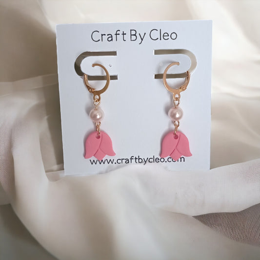 Tulip polymer clay earrings with pearl accent