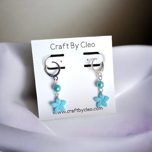 Forget Me Not polymer clay earrings with pearl accent.