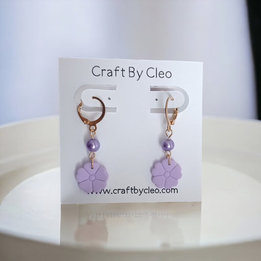 Daisy polymer clay earrings with pearl accent.